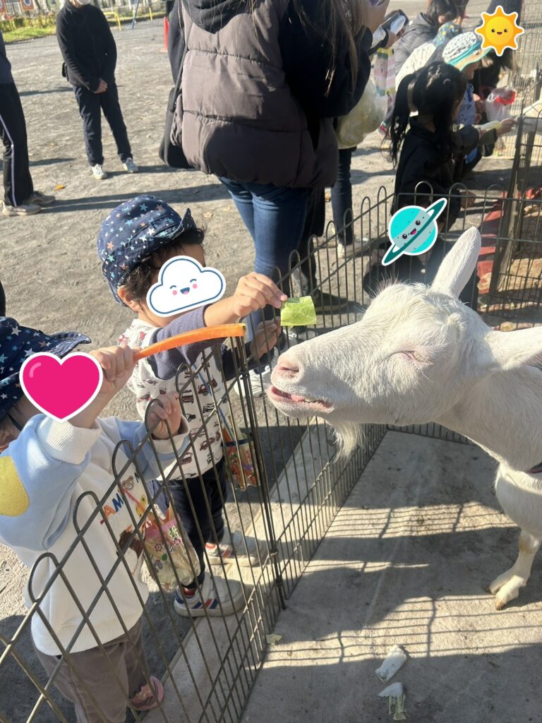 大きい子の真似をして、小さい子達も動物を身近に感じることができました。