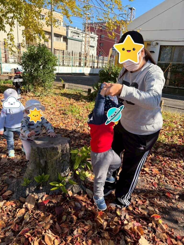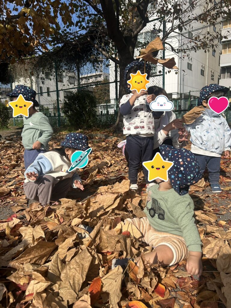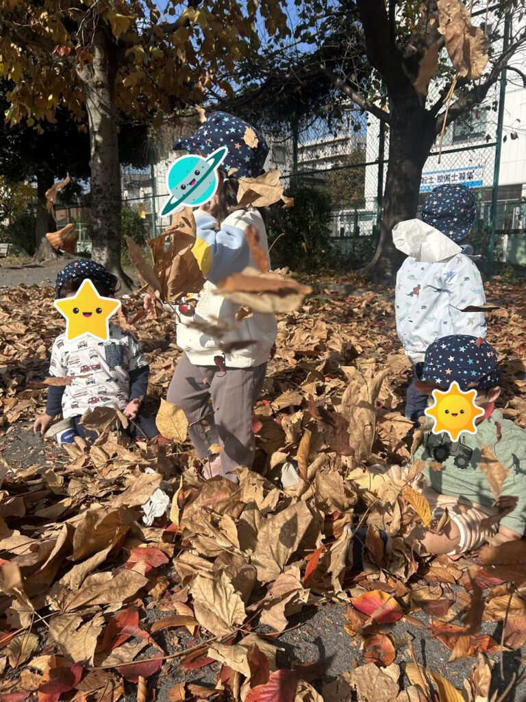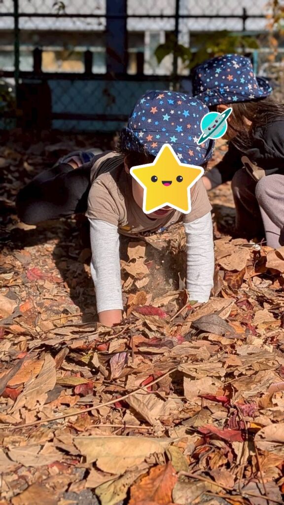 子ども達にとって落ち葉は最高の遊び相手なのです!